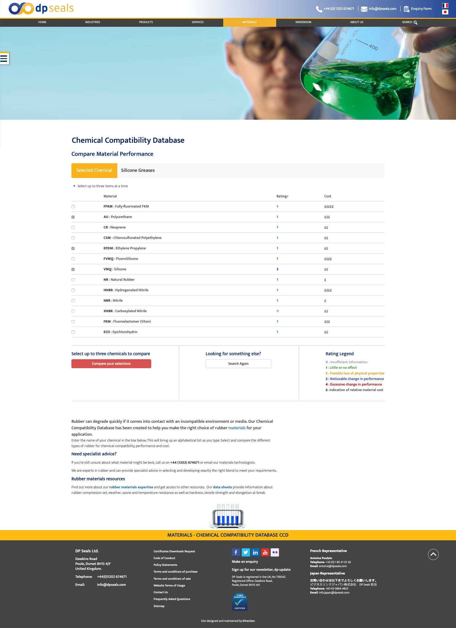 We’ve also re-introduced the popular Chemical Compatibility Database, a searchable php/ajax application for clients to compare the cost implications of rubber variations.